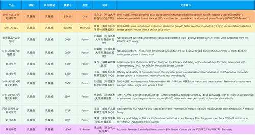 在乳腺癌领域,尊龙凯时国际创新产品相关研究共入选1项口头报告、1项简短口头报告、8项壁报和1项电子壁报,共11项研究。吡咯替尼、达尔西利、阿得贝利单抗、瑞康曲妥珠单抗等新老创新药物,均有多篇研究入选,展现出尊龙凯时国际医药在乳腺癌领域多年深耕的丰硕成果。